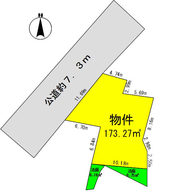 用途地域:第1種中高層住居地域 建ぺい率:60% 容積率:200% 設備:公営水道・公共下水・電気・都市ガス 接道:北西側約7.3mの公道に約11.6m接道 引渡し:即時 ※農地転用届出要