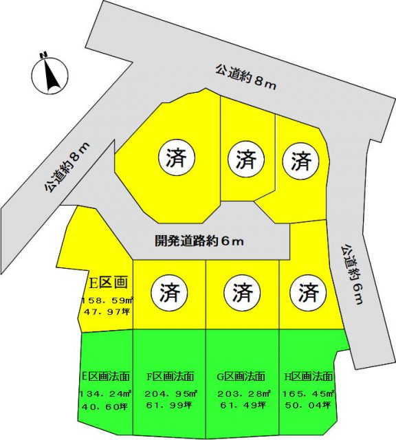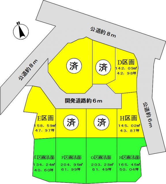 備考:E区画、F区画、G区画、H区画の法面は各区画の持ち分となります。
